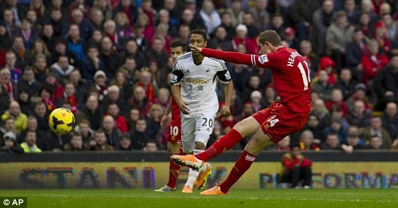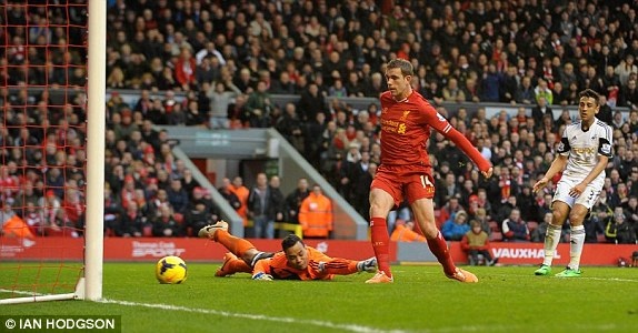 Sau khi dẫn trước 2 bàn, Lữ đoàn đỏ đã để cho Swansea gỡ hòa. Chỉ nhờ sự xuất sắc của Sturridge và Henderson, Liverpool mới đánh bại được Swansea với tỷ số 4-3.