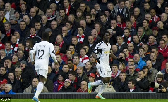 Trận đấu trở nên hấp dẫn khi Wilfried Bony gỡ hòa 2-2 cho Swansea ở phút 27,