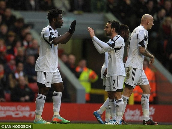 Thu về 3 điểm trong trận gặp Swansea, Liverpool tiếp tục xếp thứ 4, ít hơn 4 điểm so với đội đầu bảng Chelsea.
