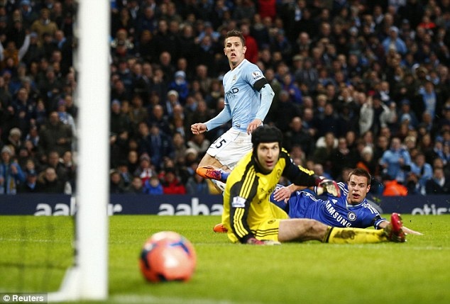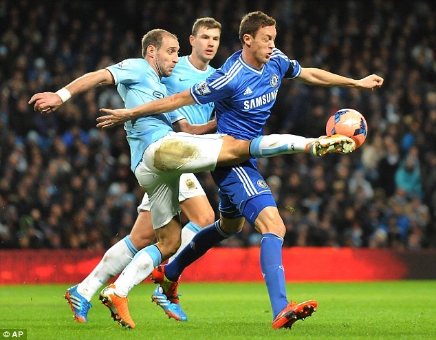 | Zabaleta chơi khá tích cực khi liên tục đeo bám cầu thủ Chelsea. |