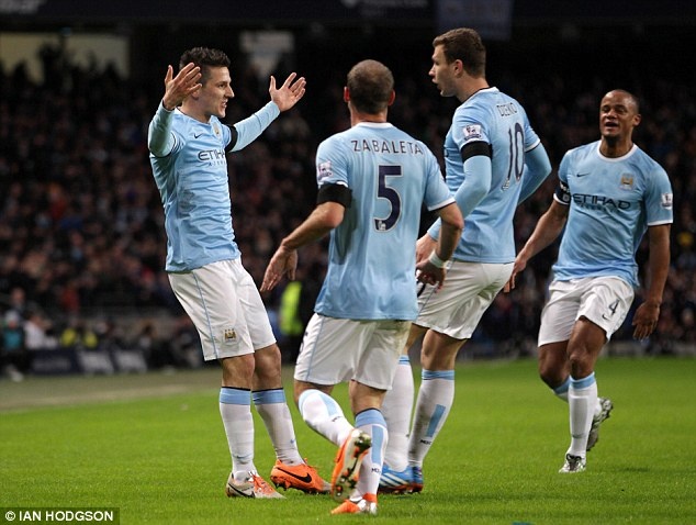 | Sau 17 phút thi đấu, Jovetic mở tỷ số cho Man City. |