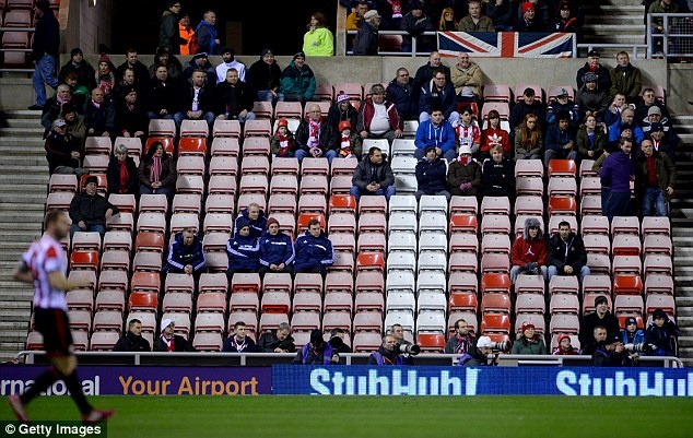 | Trên sân Ánh sáng, khá nhiều ghế vẫn còn trống ở trận bán kết lượt đi League Cup giữa đội chủ nhà Sunderland và MU. |