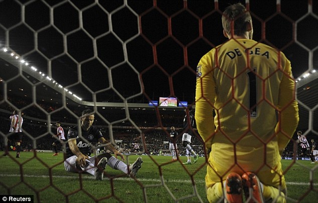 | Cầu thủ MU phản ứng sau khi trọng tài cho Sunderland hưởng quả penalty. |