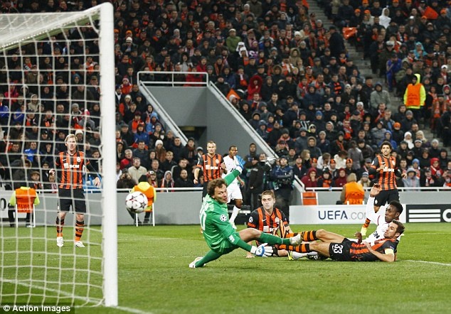 | Bàn thua của MU có lỗi rất lớn của hàng thủ. Pha phá bóng không tốt của Vidic tạo điều kiện cho Taison gỡ hòa cho Shakhtar. |