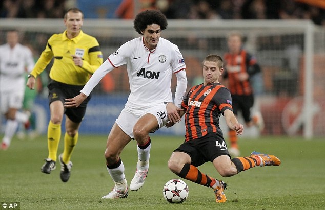 | Tiền vệ Fellaini thi đấu khá tích cực. |