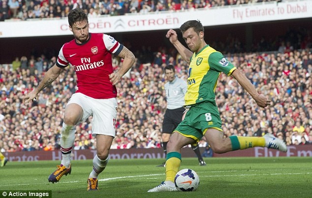 | Jonny Howson nỗ lực ghi bàn rút ngắn tỷ số cho Norwich. |