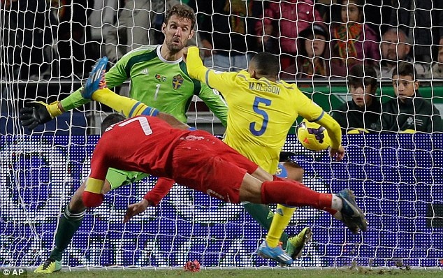 | Ibra nỗ lực thi đấu, nhưng đáng tiếc là tiền đạo số 10 của ĐT Thụy Điển không thể đe dọa khung thành Bồ Đào Nha. |