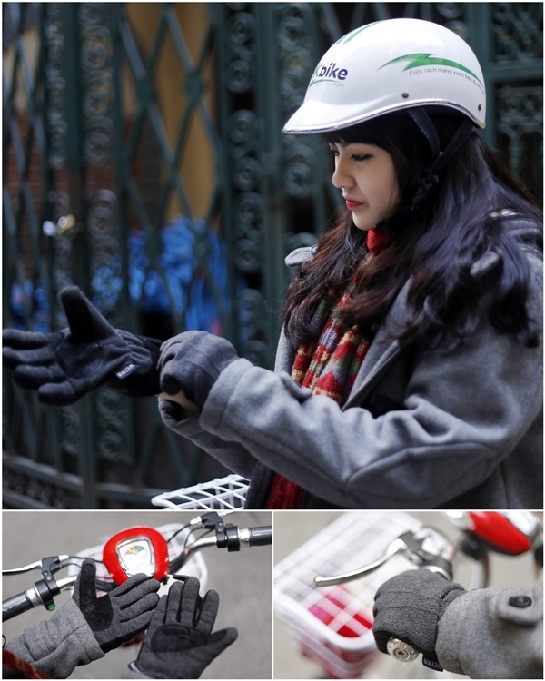 Cô bạn thích thú với cái giỏ xe rộng rãi này của HKbike vì có thể thoải mái để một lô một lốc đồ lỉnh kỉnh. "Tạm biệt những đôi găng tay cute với những họa tiết bắt mắt, từ ngày có xe đạp điện, tớ kết thân với đôi găng tay có độ nhám ở lòng bàn tay để lái xe an toàn hơn", bạn ý chia sẻ.