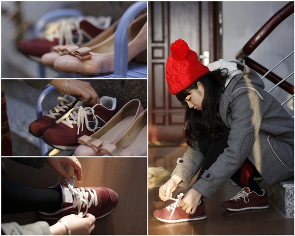 Quyết định lấy điểm nhấn là tông màu đỏ nên cô bạn chọn giày cũng "ton sur ton".