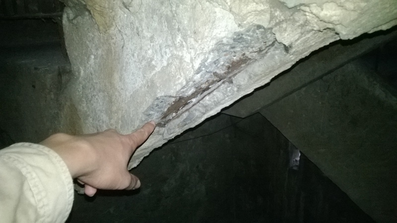 | Cận cảnh một trong rất nhiều điểm từng, cầu thanh đã trơ khung thép. |