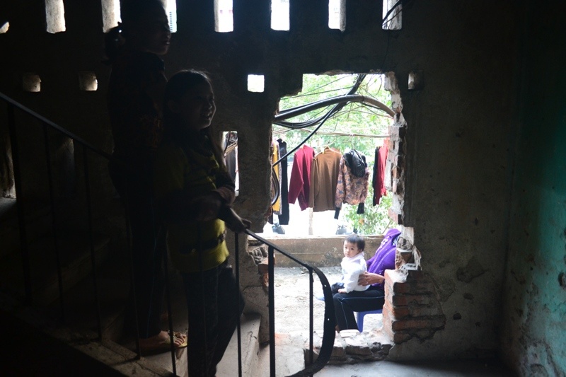 | Đến thời điểm hiện tại, hàng chục hộ dân vẫn chưa thể di chuyển đến khu tái định cư mới. Nhiều đứa trẻ do không có khu vui chơi nên đành chơi quẩn quanh trong nhà, cạnh cầu thang thô sơ, rỉ sắt, rất nguy hiểm. |
