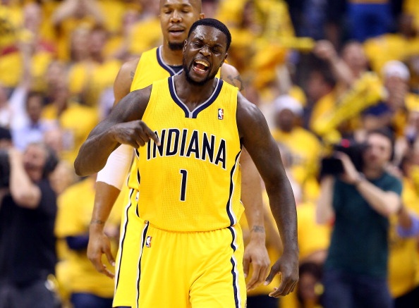 | Những cú ném rổ chính xác của Lance Stephenson (1) giúp đội chủ nhà vượt lên dẫn 63-62 sau khi hiệp 3 kết thúc. |