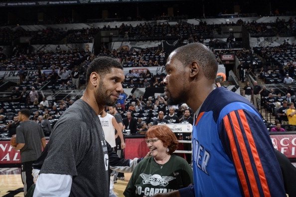 | Nhất là khi các khán giả có mặt tại trung tâm thể thao AT&T sẽ được chứng kiến màn so tài đỉnh cao giữa cựu MVP Tim Duncan (San Antonio Spurs) và đương kim MVP Kevin Durant (Oklahoma City Thunder). Ở thời kỳ đỉnh cao, Duncan từng giành MVP ở 2 mùa giải liên tiếp, 2002 và 2003. |