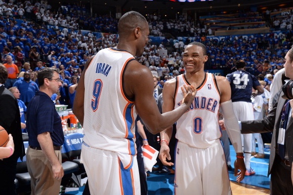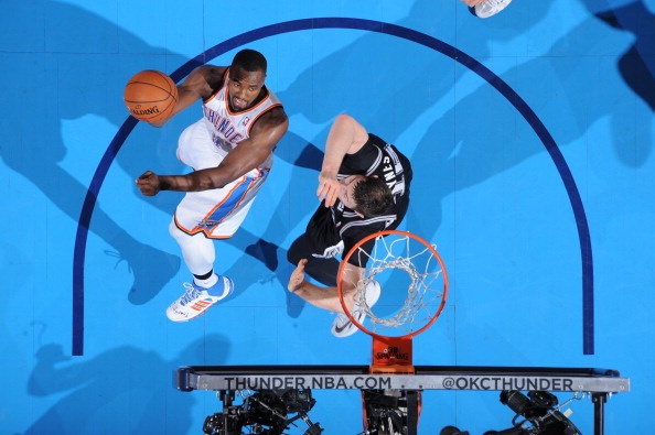 | Game 5 sẽ tiếp tục diễn ra vào sáng ngày 30/05. Với sự trở lại ấn tượng của Serge Ibaka (9) sau chấn thương, Thunder hoàn toàn có đủ sự tự tin trước chuyến hành quân tới San Antonio, Texas. |