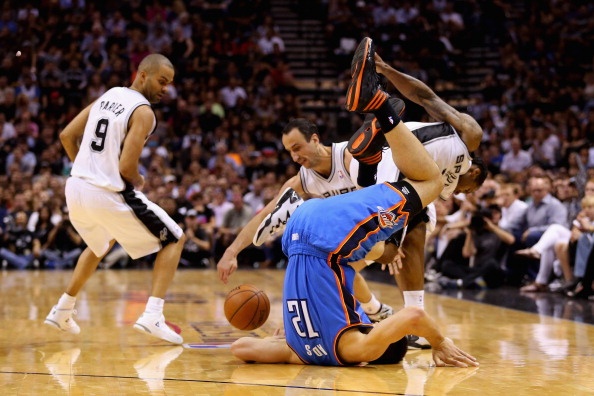 | Ngay cả Serge Ibaka cũng không còn tỏa sáng như ở game 3 và 4. Trong hơn 27 phút có mặt trên sân, tuyển thủ người Tây Ban Nha bị Matt Bonner theo kèm quá sát. HLV gạo cội Gregg Popovich đã cho thấy nhãn quan chiến thuật tuyệt vời của mình khi bất ngờ để Bonner chơi thay vị trí trung phong của Tiago Splitter ở trận này. |