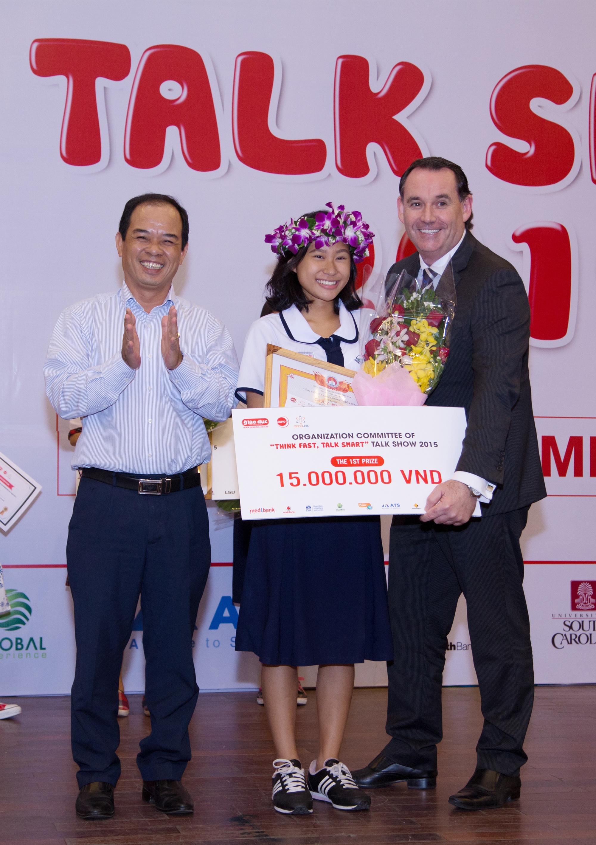 Thí sinh Bùi Thị Hồng Uyên đến từ trường THPT Võ Thị Sáu đã xuất sắc đạt giải Nhất với phần thưởng trị giá 15 triệu đồng. “Đây là sân chơi em rất yêu thích, em đã nhận được sự động viên rất lớn từ các thầy cô và bạn bè. Khi tham gia thi, em thấy thật thoải mái khi có những người thân quen cổ vũ cho em. Dù là cuộc thi, nhưng bài thi cứ như đang nói với mọi người về ước mơ của mình. Em sẽ cố gắng trau dồi thêm tiếng Anh và kết quả đạt được sẽ là động lực giúp em phấn đấu hơn nữa trong tương lai. Em mơ ước được du học ở Australia", Uyên chia sẻ.