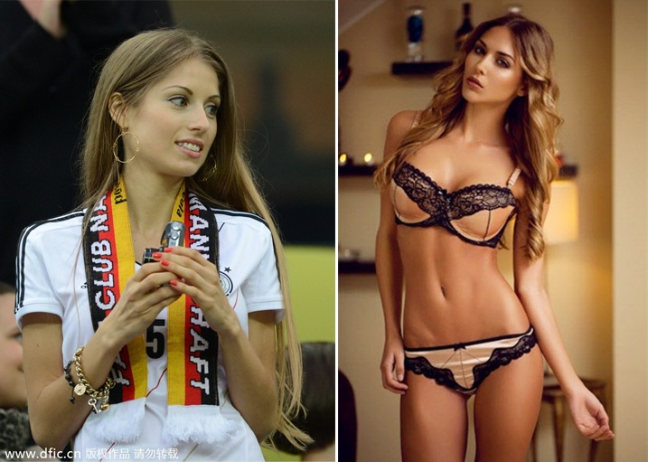 Chân dài nóng bỏng Ann-Kathrin Brommel - bạn gái Mario Goetze rạng rỡ trên khán đài cổ vũ tuyển Đức.
