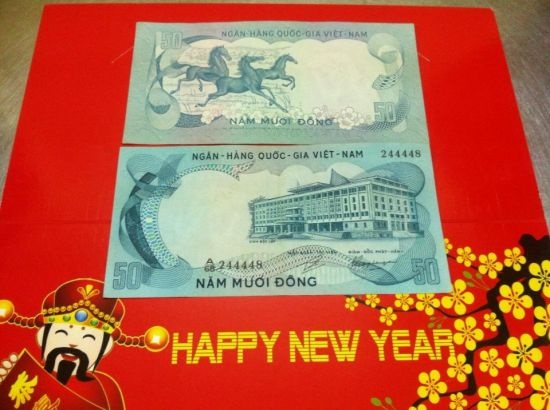 Những tờ tiền 100 đồng in hình con trâu, 50 đồng in hình ngựa, 500 đồng in hình hổ được ngân hàng quốc gia Việt Nam sản xuất và phát hành năm 1972 với giá bán 50.000 – 60.000 đồng/tờ được chọn mua để tặng cho những người có năm sinh trùng với hình in. |
