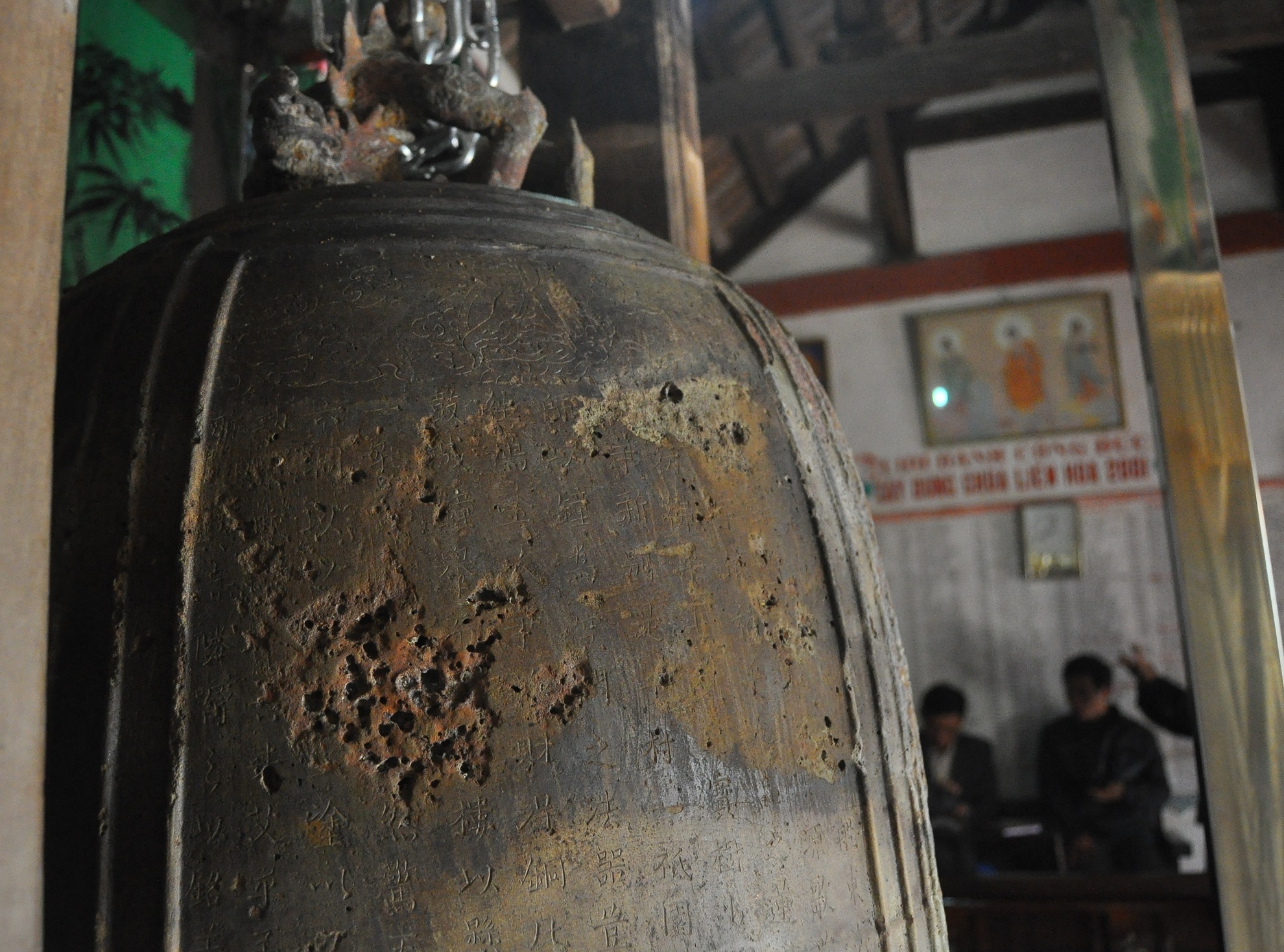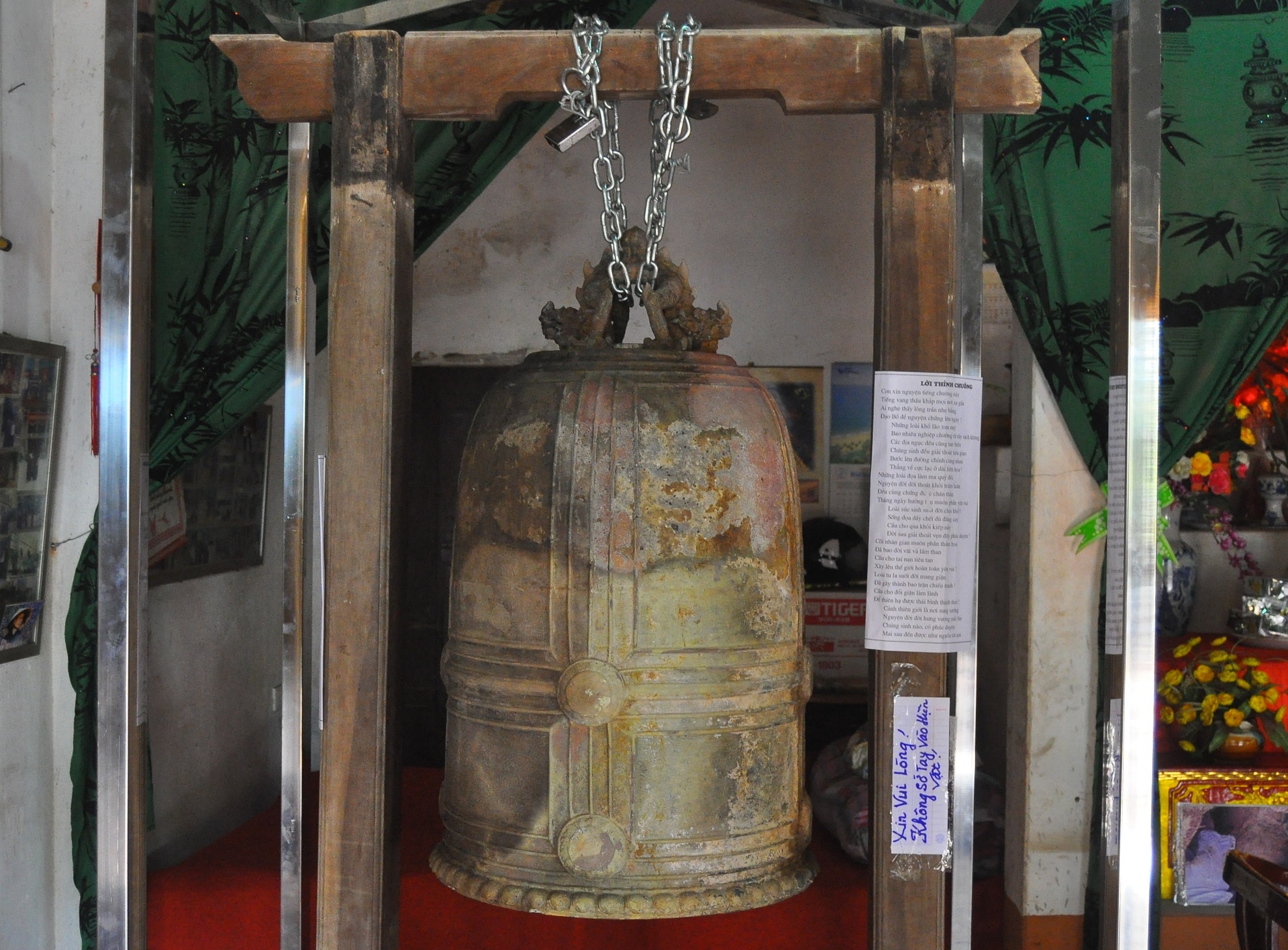 | Ni sư Thích Đàm Oanh, trụ trì chùa Liên Hoa cho hay sau khi người dân rước chuông về sân chùa, toàn thân chuông có một lớp đất màu đỏ. Mọi người thống nhất dùng khóa, xích treo lên giá trong gian tam bảo chờ lực lượng chức năng về giám định niên đại và lai lịch của cổ vật này. |
