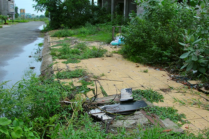 Do bỏ hoang nhiều năm liền không có người coi ngó, các biệt thự ở đây bị cây cỏ phủ kín mặt tiền, bít cả lối vào.
