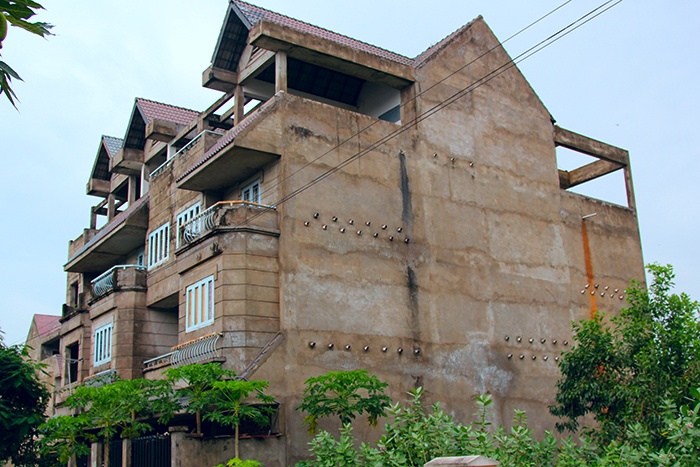 | Nhiều căn không có tường rào thì được chủ đầu tư dùng gạch xây bít cửa. Chú Hào, chủ một ngôi biệt thự kế bên cho biết: "Khu này vắng lắm, những căn biệt thự bỏ hoang này vừa lãng phí lại vừa làm mất mỹ quan cho những căn đang được sử dụng, cũng không biết đến bao giờ chúng mới có chủ nhân đích thực, cứ chờ thôi biết sao bây giờ". |