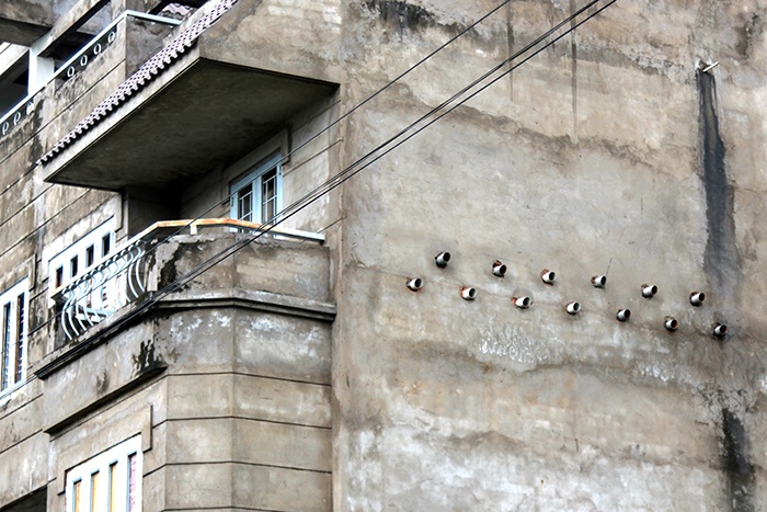 | Hệ thống loa dẫn dụ chim yến được gắn trên nóc các biệt thự. |