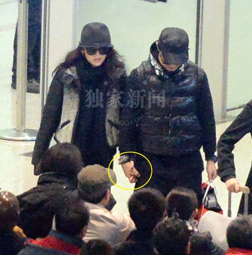 Hình ảnh Chương Tử Di và Uông Phong tình tứ nắm tay ở sân bay: