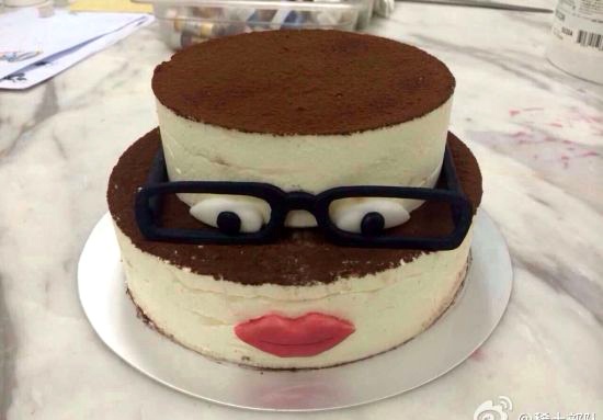 | Chiếc bánh sinh nhật được Chương Tử Di làm phỏng theo gương mặt của người yêu. |