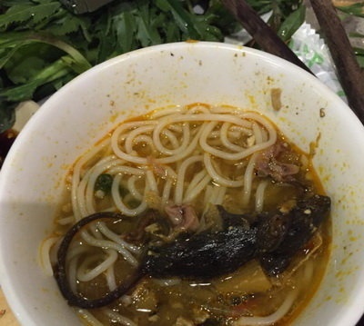 | Con chuột được phát hiện trong nồi lẩu do gia đình ông H. gọi tại quán tối 20/11. |