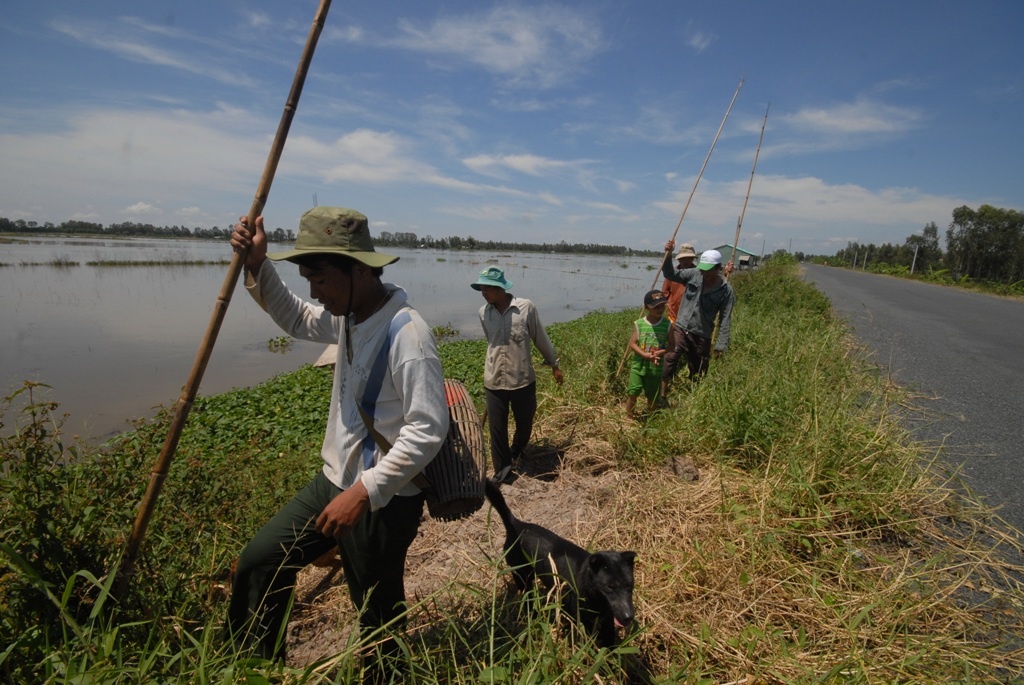 Săn chuột có nhiều hình thức như đào hang, bẫy, xiên hoặc đuổi cù trong ruộng lúa.