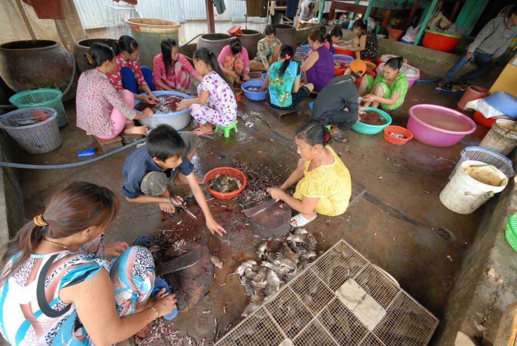 Chị Cao Thị Thúy Hằng, người làm công lột da chuột ở chợ Phù Dật cho biết vào mùa chuột rộ bình quân mỗi ngày chị lột da, móc ngũ tạng, chặt đầu, chặt đuôi, chân…từ 50 - 70 kg, chủ trả tiền công gần 100.000 đồng.