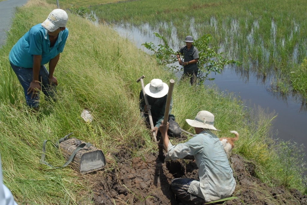 Anh Lê Văn Phương, ở xã Đông Thắng, huyện Cờ Đỏ, thành phố Cần Thơ, cùng chú chó và 4 người bạn đang đi đào chuột ngoài đồng cho biết, đang vào mùa chuột, từ sáng tới chiều các anh bắt khoảng 10-15 kg/ngày, nhưng bữa nay lại bắt gần 20 kg chuột có thể bán gần 1 triệu đồng.