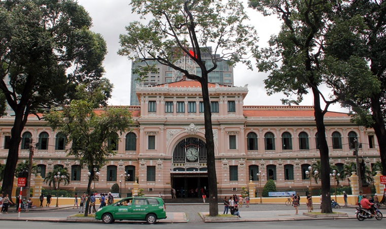 | Bưu điện trung tâm Sài Gòn được xây dựng năm 1886 đến 1891 theo thiết kế của kiến trúc sư người Pháp Villedieu với lối kiến trúc cổ điển Châu Âu và kiến trúc truyền thống Châu Á. Ở mặt tiền Bưu điện có vinh danh những nhà phát minh ra ngành điện tín và ngành điện nổi tiếng của thế giới. Bưu điện TPHCM nằm bên cạnh nhà thờ Đức Bà tạo nên một cụm công trình kiến trúc thuộc địa đặc biệt tạo dấu ấn khó quên đối với du khách. |