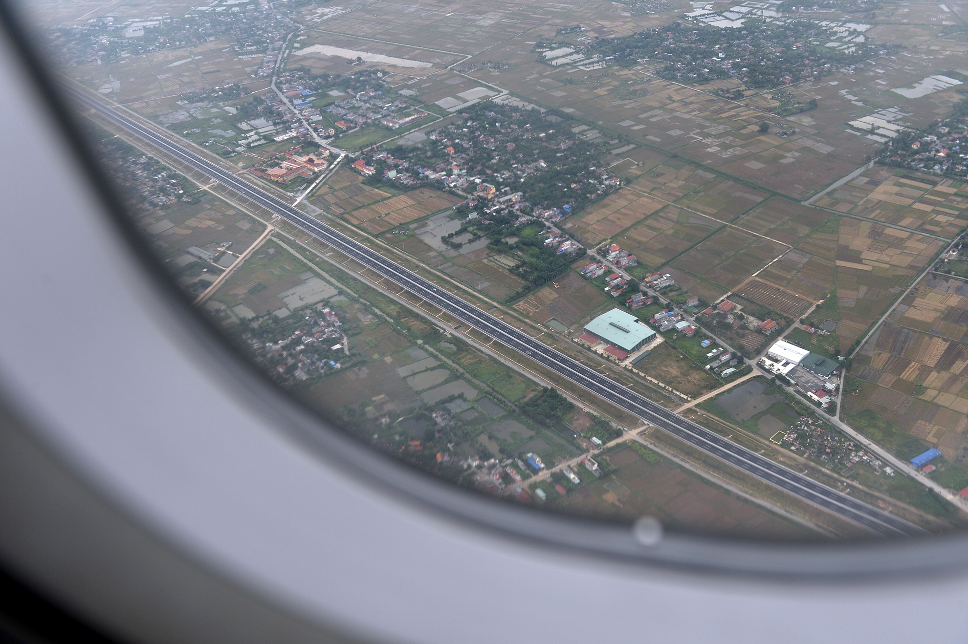 | Ngồi trong khoang, hành khách có thể quan sát qua cửa sổ phong cảnh thành phố hoa phượng đỏ và đặc biệt là Cao tốc Hà Nội - Hải Phòng (quốc lộ 5B, sắp khánh thành) trong khi máy bay đang giảm độ cao để hạ cánh. |