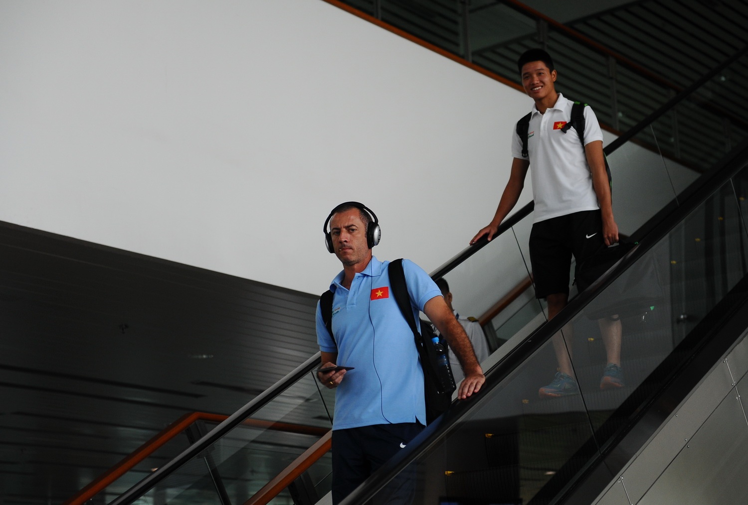 | Toàn đội U19 Việt Nam có mặt tại sân bay Nay Pyi Taw lúc 7h sáng nay (12/10) để di chuyển tới Yangon. Các cầu thủ đều thể hiện sự tiếc nuối khi đánh mất 1 điểm ở những phút cuối cùng trong trận gặp U19 Nhật Bản chiều qua. |