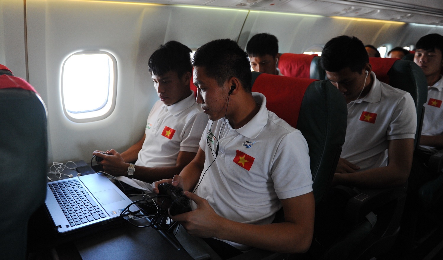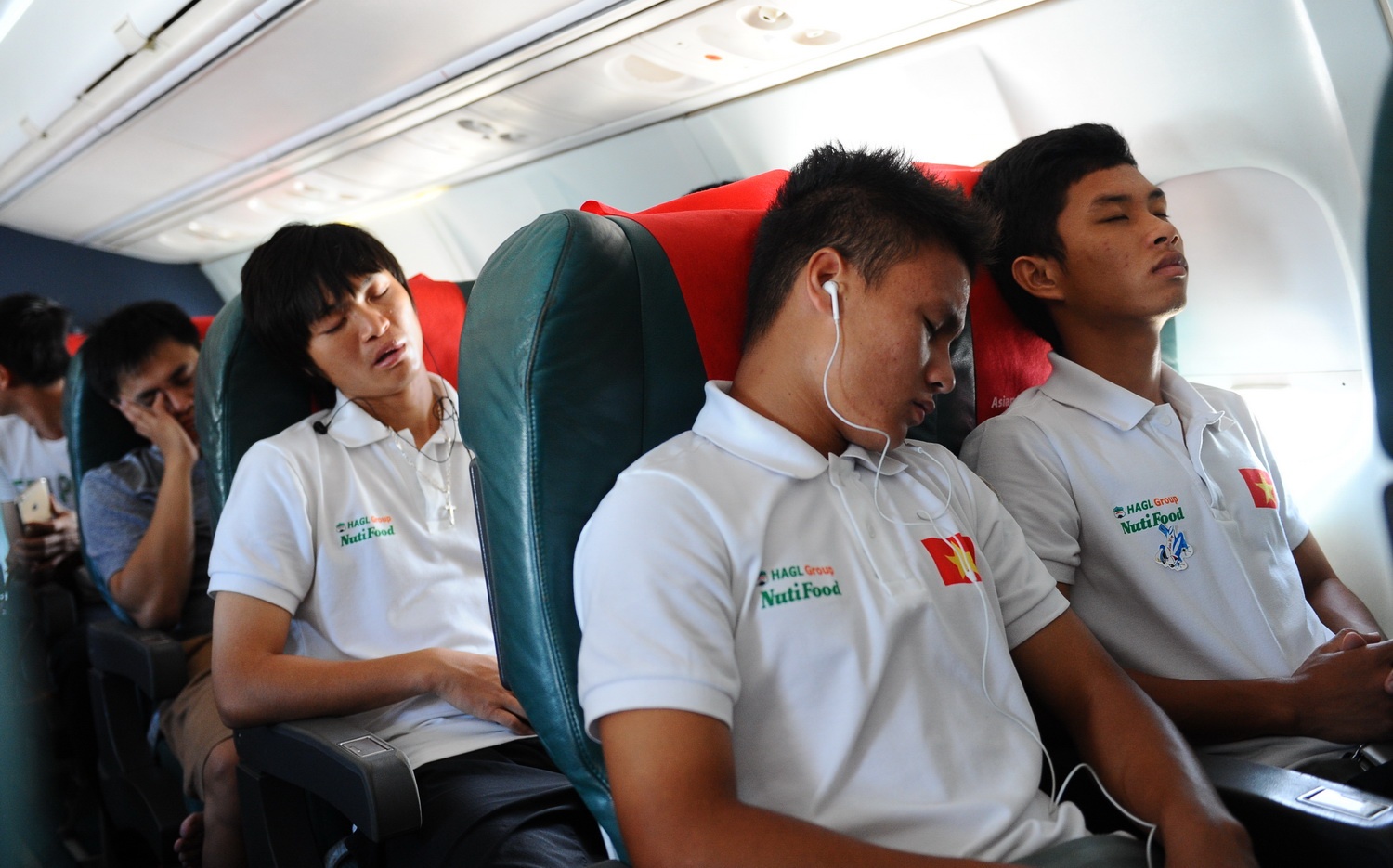 | Chuyến bay từ Nay Pyi Taw về Yangon kéo dài 45 phút, quãng đường khoảng 350 km. Các cầu thủ U19 Việt Nam tranh thủ ngủ lại giấc vì sáng nay phải dậy lúc 5h30 để dùng bữa rồi sau đó di chuyển ra sân bay. |