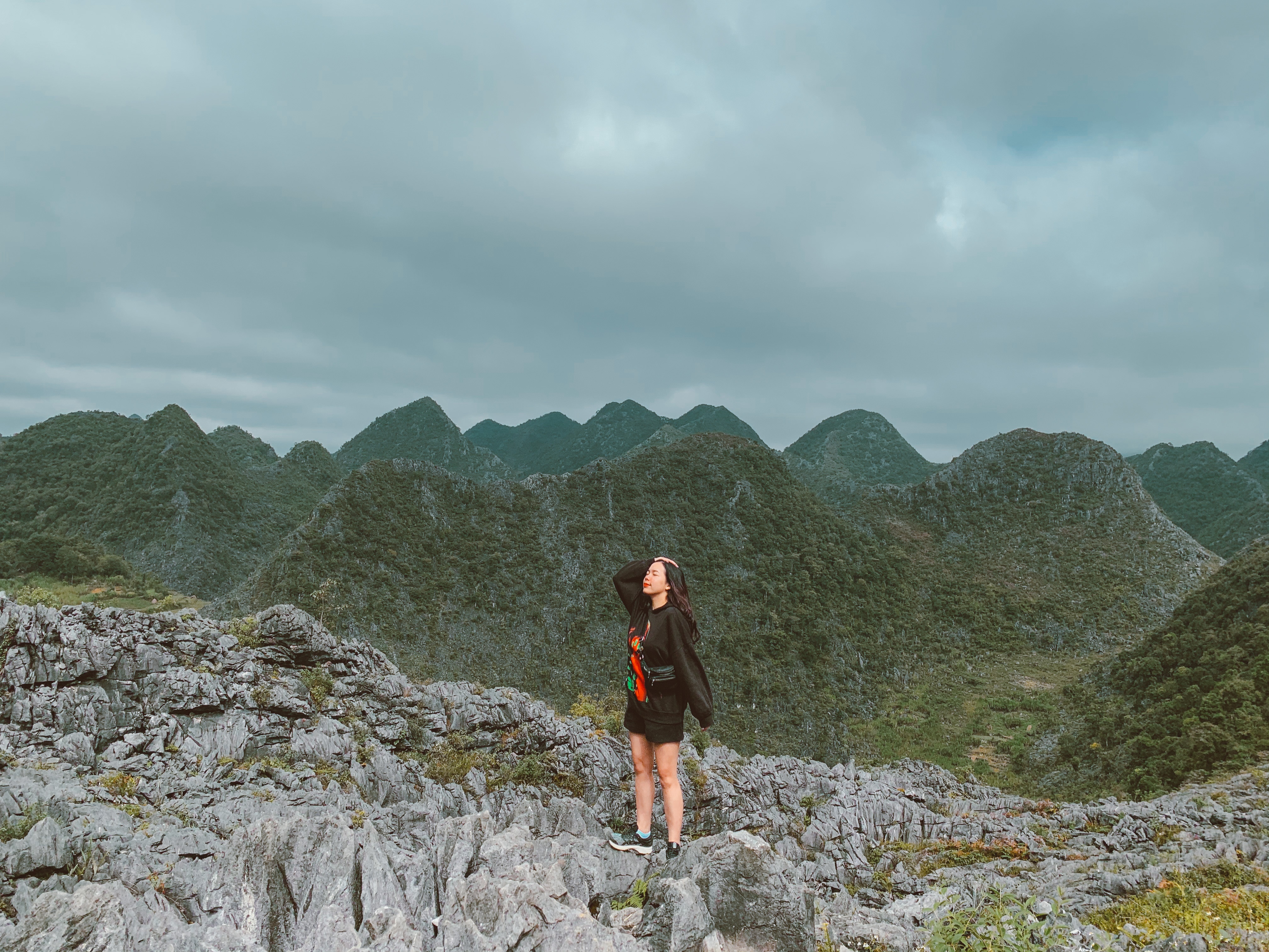 Ngày 1, nhóm đến Đồng Văn lúc 10h, nhận phòng khách sạn, trời vẫn còn mưa nhỏ nên quyết định đi chơi loanh quanh thị trấn, thưởng thức cà phê trong khu phố cổ.