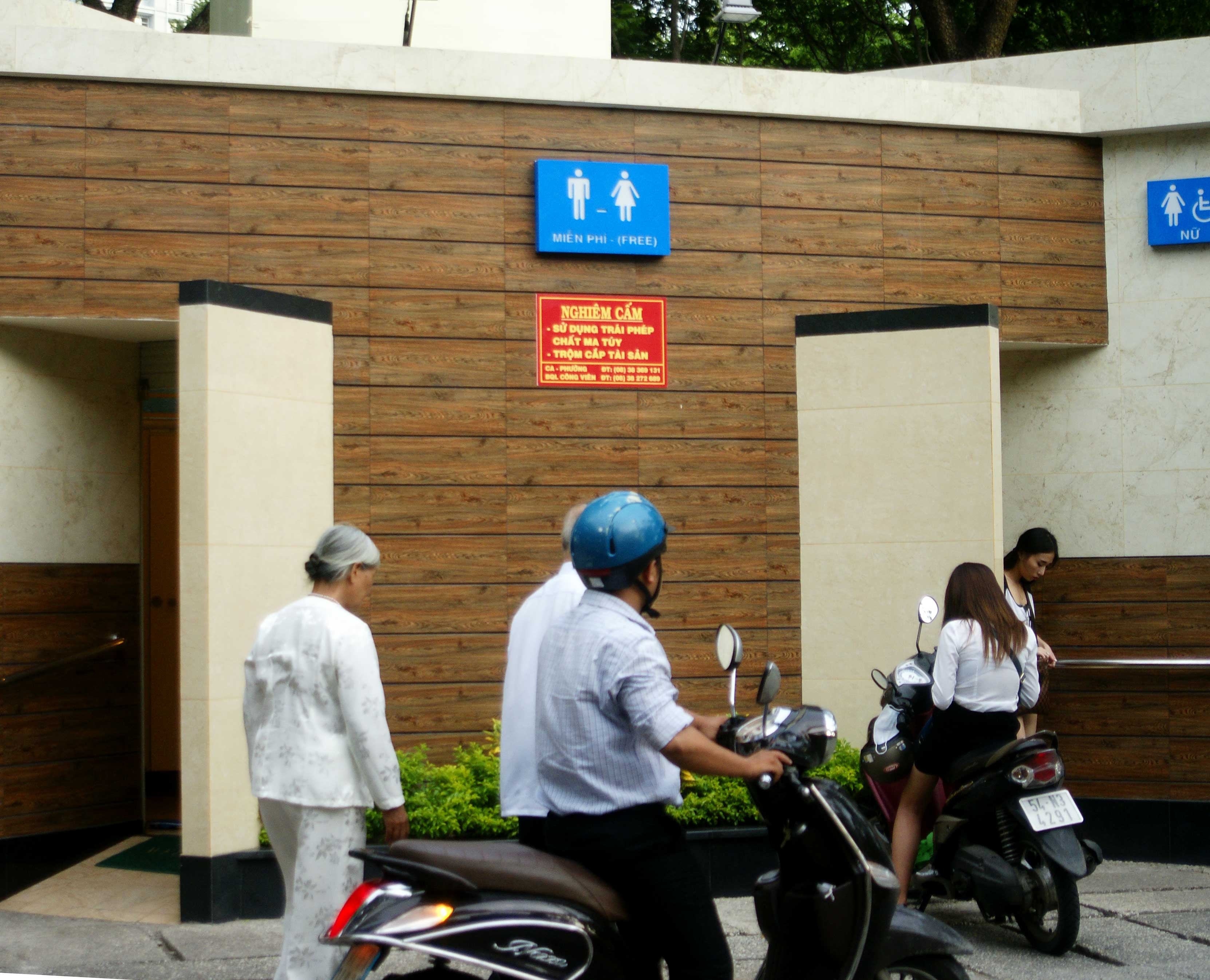 | Nhiều người không biết gửi xe ở đâu để vào nhà vệ sinh công cộng tiền tỷ. |