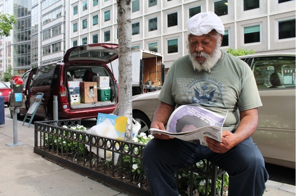 Vào một buổi tối mùa hè, ông ngồi trong một cửa hàng McDonald’s trên đường số 17 Northwest, chiếc khăn trắng quấn quanh đầu giống như khăn xếp.