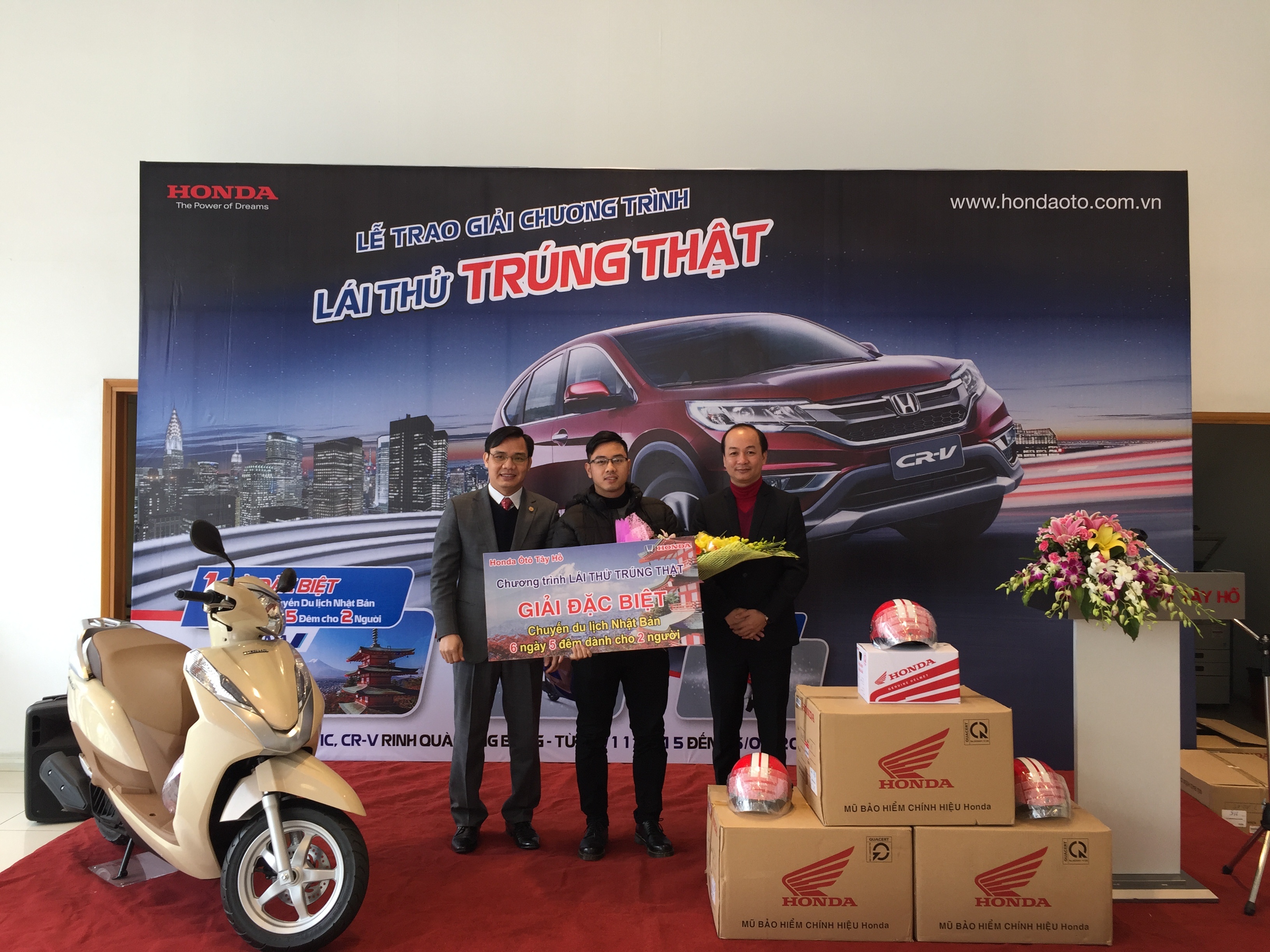Đặc biệt, chương trình Lái thử trúng thật diễn ra từ 1/11/2015 đến 15/1, do Công ty Honda Việt Nam phối hợp cùng 14 đại lý ôtô Honda trên toàn quốc thực hiện, đã kết thúc thành công tốt đẹp.