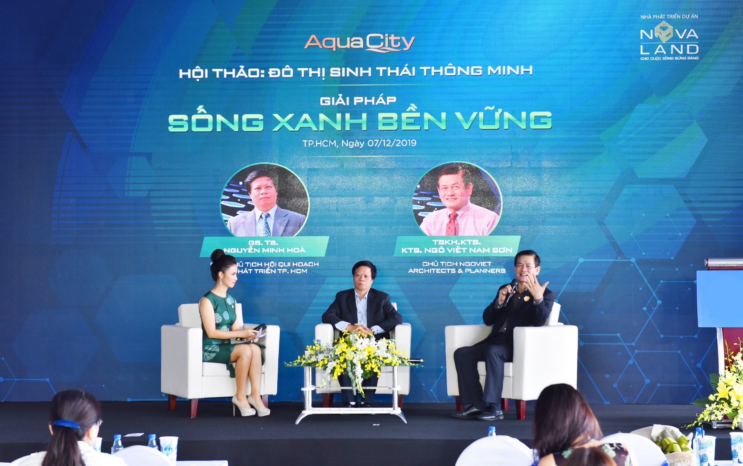 Lấy ví dụ về đô thị sinh thái thông minh tiêu biểu đang phát triển tại nước ta, GS.TS Nguyễn Minh Hòa và TSKH.KTS Ngô Viết Nam Sơn gia đã nhắc tới dự án Aqua City của nhà phát triển bất động sản uy tín Novaland.