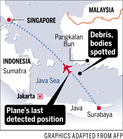 Những mảnh vỡ của máy bay Airbus 320-200 được tìm thấy trong hơn 48 giờ sau khi chuyến bay gặp nạn, trên đường từ Surabaya, Indonesia đến Singapore hôm 28/12 với 162 người trên máy bay. Qua đó có thể nhận định nhiều khả năng máy bay QZ8501 đâm xuống khi còn nguyên vẹn rồi vỡ tung khi chìm xuống đáy biển.