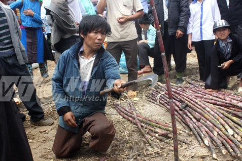 | Trò chơi chặt mía ăn tiền ở địa đầu Hà Giang. |