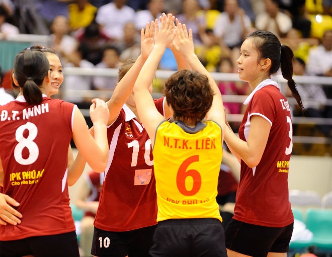 | Libero Kim Liên (6) cộng thêm tầm với mới ngang ngửa chiều cao của Thanh Thúy (phải). |