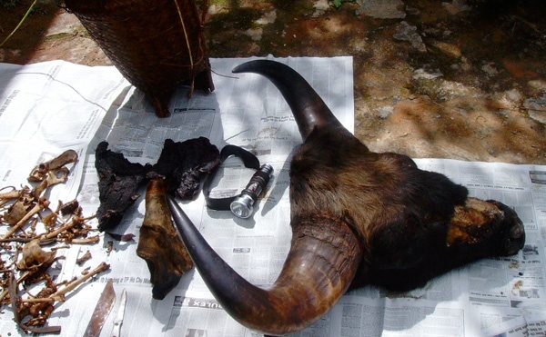 | Đầu bò tót phát hiện trong một vụ án ở tỉnh Ninh Thuận. |