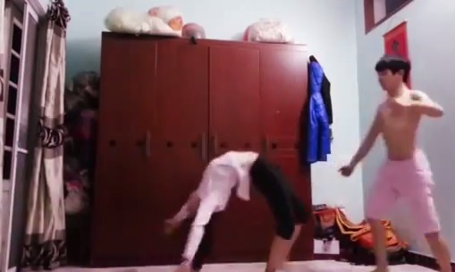 Cách thể hiện tình yêu đặc biệt, chưa đến 30 giây của hai bạn trẻ trong clip được thực hiện dựa trên ý tưởng của trào lưu nụ hôn nhào lộn đang gây sốt tại Hàn Quốc, Trung Quốc và các nước châu Á.