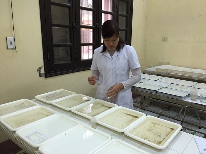 Chỉ tay vào hộp thức ăn của cung quăng, chị Oanh cho biết, thức ăn của cung quăng cũng phải mày mò từ thực tế cung quăng sống vùng nước lợ ăn gì, thích gì từ đó chế biến ra. Đó là bột tôm, bột bánh mì, bột đậu được sấy khô rồi xay mịn. Còn thức ăn cho muỗi là chuột bạch, thậm chí là... tay của bác sỹ, kỹ thuật viên.