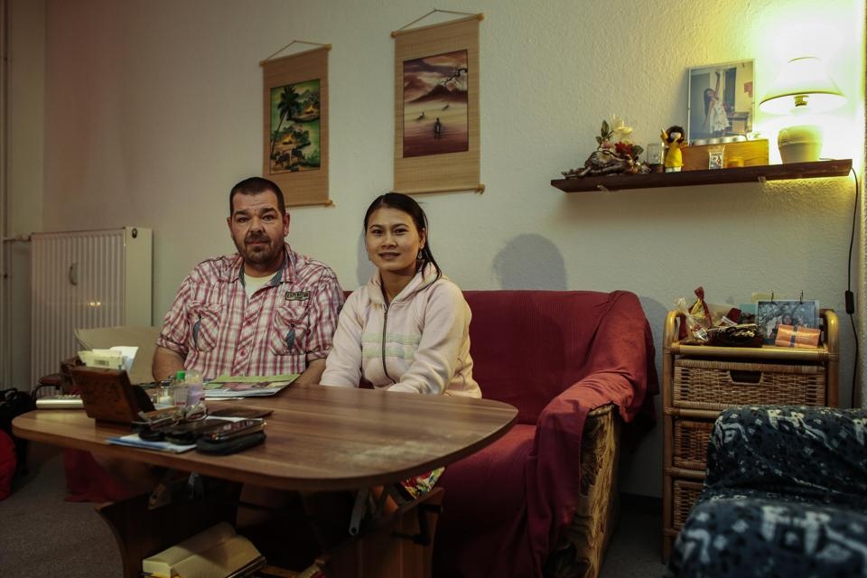 Trong căn hộ ở ngoại ô Berlin, hai người nắm tay nhau và nói chuyện bằng tiếng Anh, Đức và Việt. Họ liên tục gọi nhau là “anh yêu”, “em yêu”.