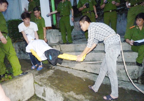 | Nhà chức trách dựng lại cảnh hung thủ giết người. |