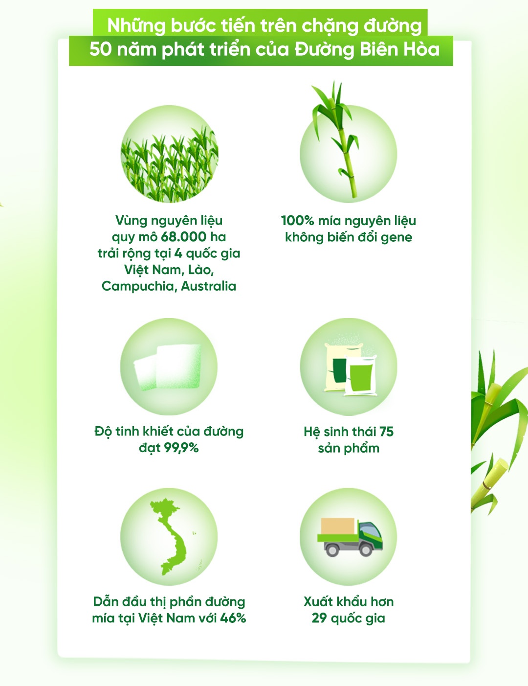 Trải qua nhiều thăng trầm cùng với nền kinh tế Việt Nam, yếu tố cốt lõi quyết định thành công của Đường Biên Hòa trên hành trình chiếm lĩnh thị phần nội địa, vươn xa trên trường quốc tế đến từ hai chữ “chất lượng”. Từ những ngày đầu khởi sự, Đường Biên Hòa đã bắt tay vào nghiên cứu để tạo ra những “cây mía kiêu hãnh” với 100% nguồn mía không biến đổi gene, lớn lên trong sự bao bọc của thiên nhiên và tận tâm của người nông dân. Những “cây mía kiêu hãnh” không chỉ khởi nguồn cho những hạt đường mía vẹn nguyên vị ngọt lành, thuần khiết mà còn là cách Đường Biên Hòa tuân theo tôn chỉ “Đường sạch vì sức khỏe cộng đồng, dân tộc Việt Nam và tương lai nhân loại”.